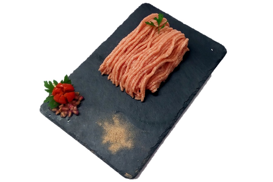 Carne picada de pollo (muslos y pechugas) con huevo, pan y especia.